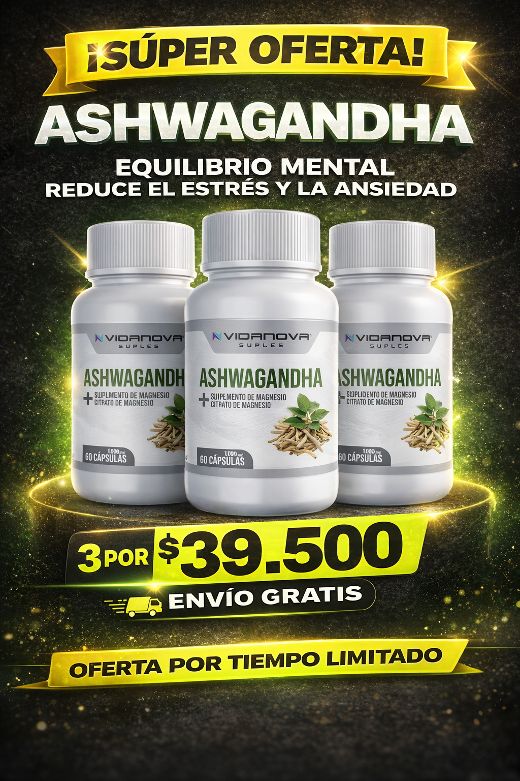 Lleva DOS por $29.500 / Ashwagandha + Magnesio 1000mg 60 cápsulas.